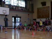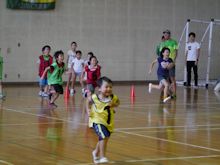準備体操・ラダートレーニング・腕振り・スタート・リレーなど充実した教室でした。