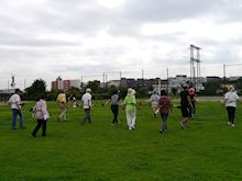 その基礎をレッスンした後、実際に区内をウォーキングして