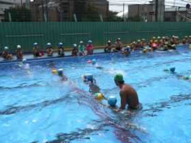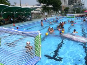 水球をベースにした誰もが楽しめる、プールで行うボールスポーツ「アクアゲーム」 毎年恒例となった川崎市でのイベント“カワサキアクアゲームフェスタ”が 今年は、7/29,30の2日間に渡って高津区の久本小学校で行われました。 宮前区・高津区・麻生区、そして東京・中野のTAC中野チームからも 子ども達が参加し、2日目には全4チームのトーナメント戦が行われました。 優勝は高津区の坂戸小学校チーム。 選手達はもちろん、応援にいらした保護者の方々の応援も非常に盛り上がり 熱く楽しい2日間となりました。 参加してくれた子ども達、暑い中、応援して下さった保護者の皆様、
